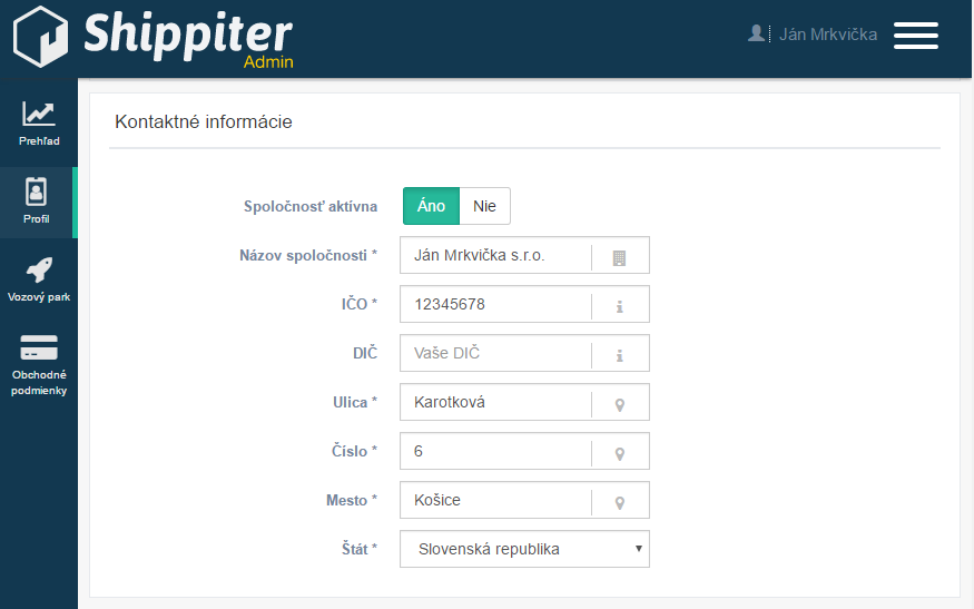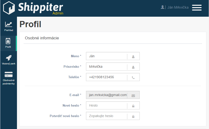 Každý prepravca má v systéme jeden prihlasovací účet, pomocou ktorého spravuje svoju agendu.
